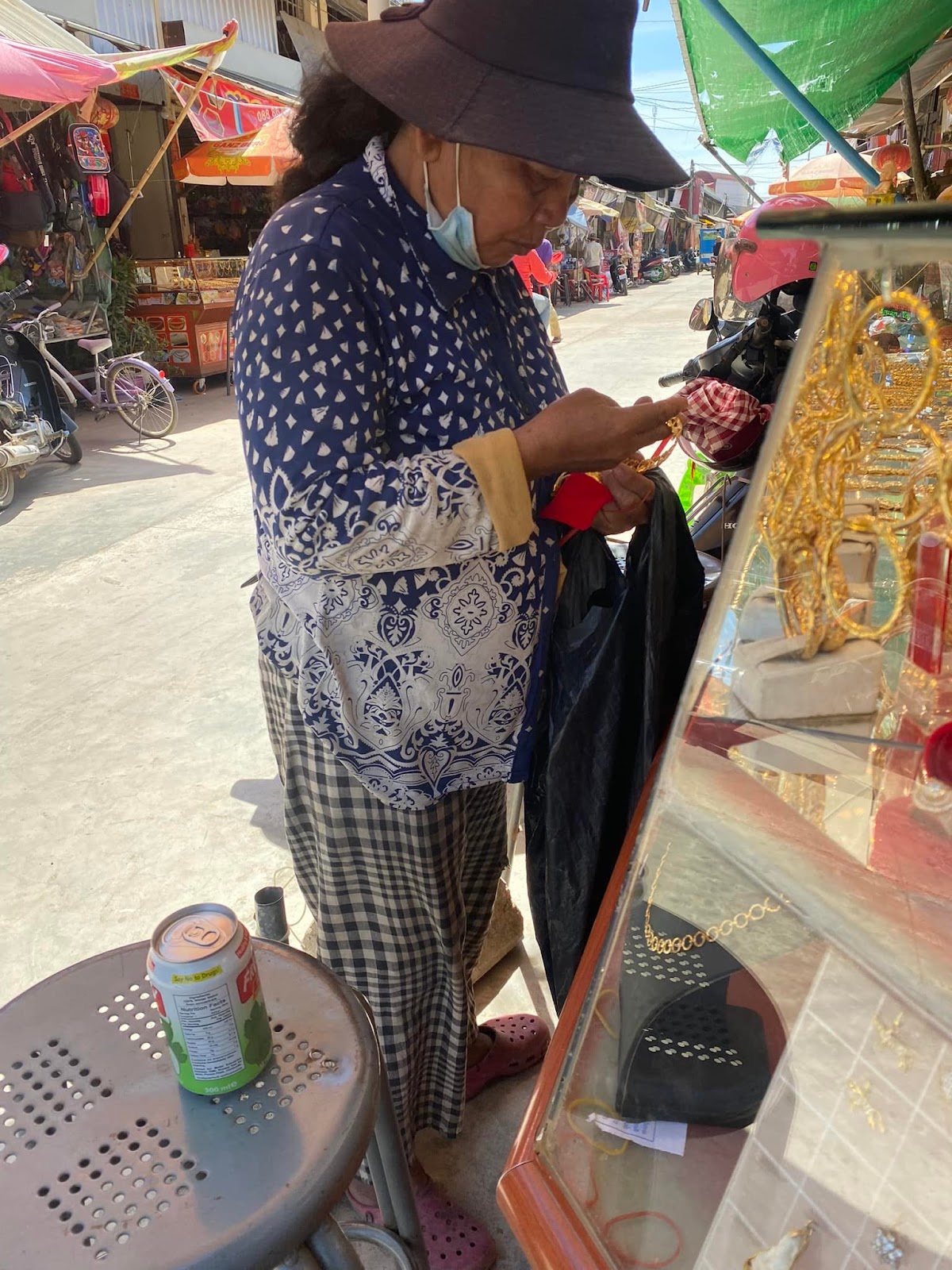 ខ្សែដៃ ១,០៥០,០០០ឬ តែគាត់មានតែមួយលានទេ លក់ឲ្យគាត់បានអត់ ព្រោះកូនគាត់ស្រលាញ់ ខ្ញុំថាបានអ៊ំ ៥មុឺនខ្ញុំអត់យកទេជួយអ៊ំចុះ គាត់រាប់លុយចុះឡើងៗៗហើយគាត់ថាអ៊ុំអត់ទាន់ហូបបាយទេអ៊ំសូម១មុឺនទៀត ឲ្យ99មុឺន ខ្ញុំថាបានអ៊ំ ទឹកចិត្តអ៊ំទិញឲ្យកូន ខ្ញុំសុខចិត្តខាតក៏លក់ដែរ